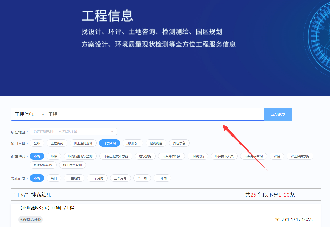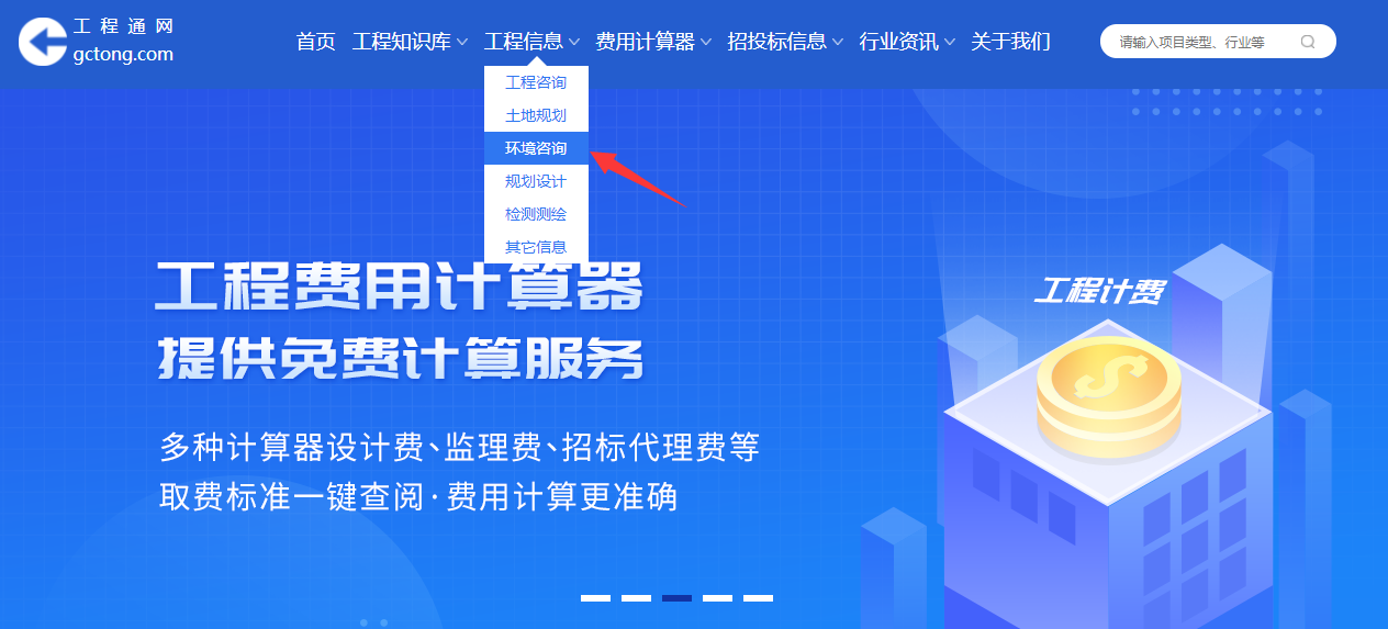 ①鼠標(biāo)放在“工程信息”菜單欄,在下拉列表中找到“環(huán)境咨詢”并點(diǎn)擊。