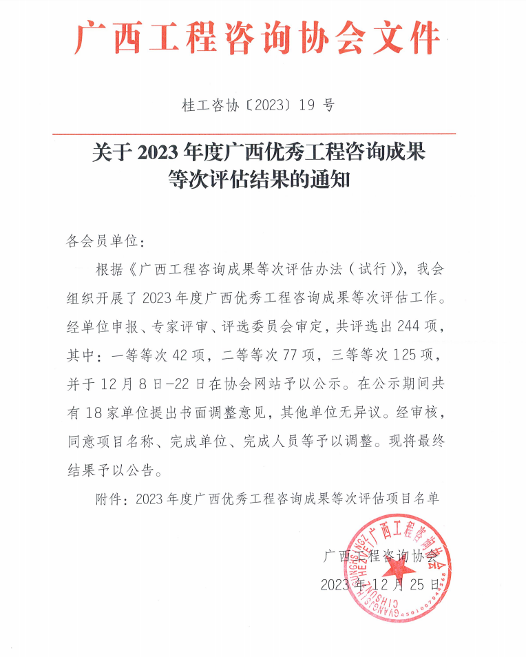 portant; overflow-wrap: break-word !important;">近日,廣西中創建設工程有portant; overflow-wrap: break-word !important;">限公司在“2023年度廣西優秀工程咨詢成果等次評估工作”中取得了顯著的成績。portant; overflow-wrap: break-word !important;">中創公司編制的多個項目在評估中脫穎而出,榮獲二等和三等評估等次。portant; overflow-wrap: break-word !important;">這些成果不僅體現了公司在工程咨詢領域的專業能力和技術水平,也進一步提升了公司在行業內的知名度和影響力。
