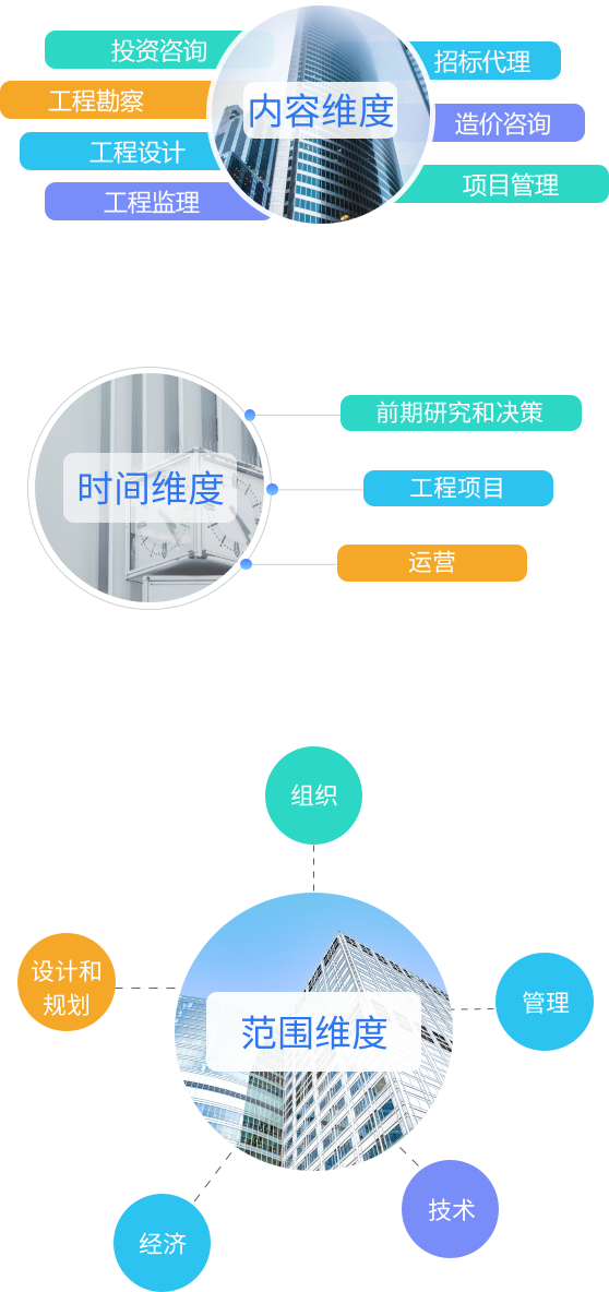 集成化--整合投資咨詢、招標(biāo)代理、勘察、設(shè)計(jì)、監(jiān)理、造價(jià)、項(xiàng)目管理等業(yè)務(wù)資源和專業(yè)能力,實(shí)現(xiàn)項(xiàng)目組織、管理、經(jīng)濟(jì)、技術(shù)等全方位一體化